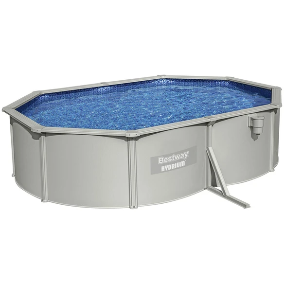 BESTWAY Pool, grau, BxHxL: 360 x 120 x 500 cm, 365 Tage aufstellfähig, UV-Schutzbeschichtete Premium-PVC Einlage, Verstärkter geriffelter Stahl, Integrierter Oberflächenskimmer, Extra breiter Handlauf