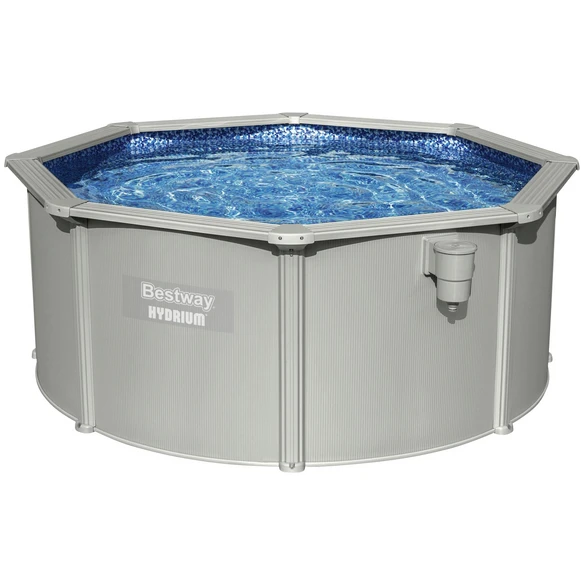 BESTWAY Pool, grau, ØxH: 300 x 120 cm, 365 Tage aufstellfähig, UV-Schutzbeschichtete Premium-PVC Einlage, Verstärkter geriffelter Stahl, Integrierter Oberflächenskimmer, Extra breiter Handlauf