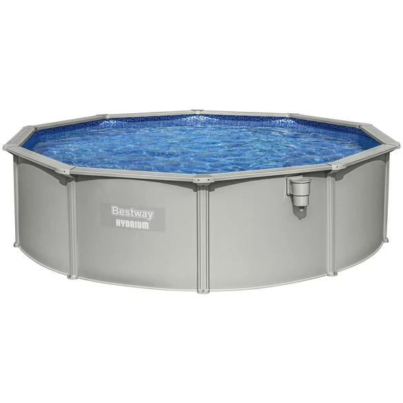 BESTWAY Pool, grau, ØxH: 460 x 120 cm, 365 Tage aufstellfähig, UV-Schutzbeschichtete Premium-PVC Einlage, Verstärkter geriffelter Stahl, Integrierter Oberflächenskimmer, Extra breiter Handlauf