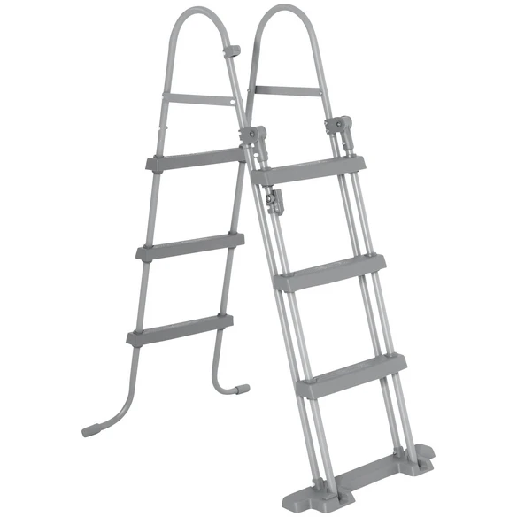 BESTWAY Pool-Leiter, grau, für Pools bis 1,07 m, Korrosionsbeständiger Metallrahmen, Geeignet für Pools bis 107 cm Höhe, Kindersicherung durch hochklappbaren Einstieg