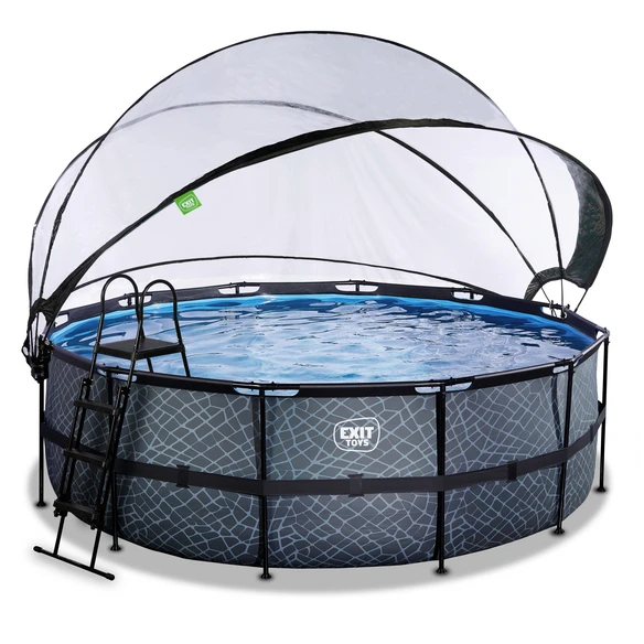 EXIT Toys Pool »Stone Pools«, Ø: 447 cm, 14758 l, grau, Mit Sandfilterpumpe, Extra tiefer Pool, Multifunktionale Poolabdeckung, Einzigartiges Design