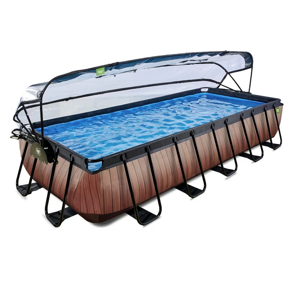 EXIT Toys Pool »Wood Pools«, Breite: 320 cm, 12600 l, braun, Mit Sandfilterpumpe, Multifunktionale Poolabdeckung, Für 9 Personen, Einzigartiges Design
