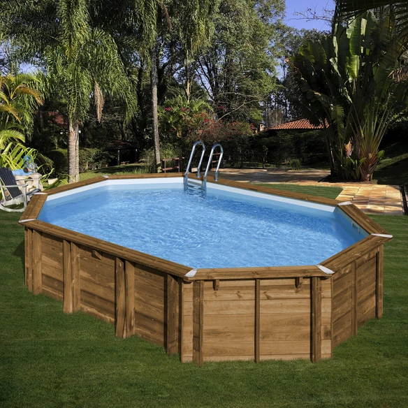 GRE Echtholzpool »Safran 2«, braun, BxHxL: 395 x 133 x 620 cm, aus hochwertiger französischer Waldkiefer, mit Filteranlage, Skimmer, Holz + Edelstahl-Leiter, mit Filteranlage, Leiter, mit Bodenschutz