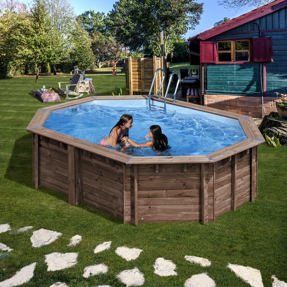 GRE Ovalpool, braun, BxHxL: 335 x 130 x 535 cm, aus hochwertiger französischer Waldkiefer, mit Filteranlage und Skimmer, mit Leiter