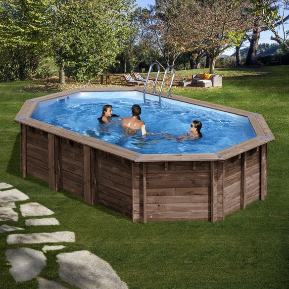 GRE Ovalpool, braun, BxHxL: 335 x 130 x 632 cm, aus hochwertiger französischer Waldkiefer, mit Filteranlage und Skimmer, mit Leiter