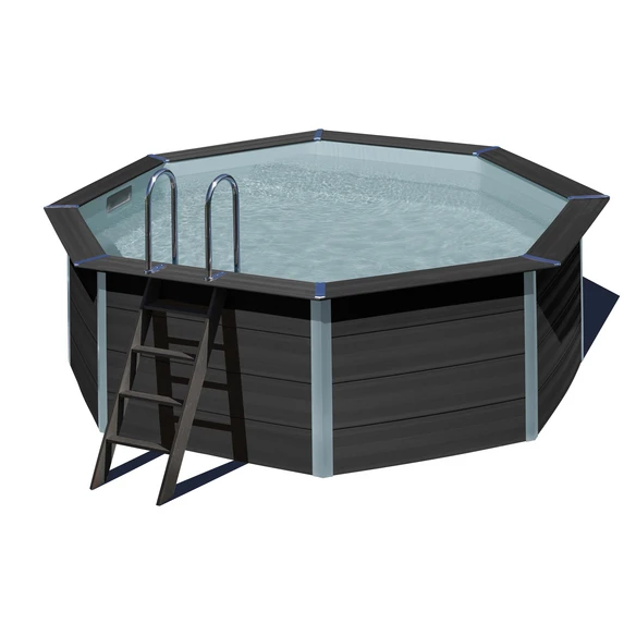 GRE Rundpool »Avantgarde«, grau, ØxH: 410 x 124 cm, Mit WPC-Außenleiter und Tiefbeckenleiter, WPC-Wandstärke 36 mm und PVC Innenfolie 0,6 mm, mit breitem Handlauf, Inkl. Sandfilteranlage und Quarzsand