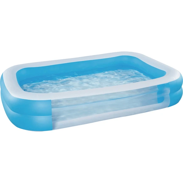 HAPPY PEOPLE Pool blau, BxLxH: 175 x 262 x 50 cm, 2 große aufblasbare Ringe, 1 Seite mit transparentem Sichtfenster, Wasserauslassventil im Boden