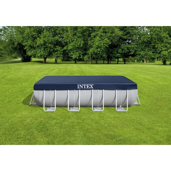 INTEX Abdeckplane, Pools, Schwimmbecken, Starke PE-Folie, Integrierte Entwässerungslöcher, Schnurbefestigung und zusätzlich Kunststoffstrippen, Reduziert den Reinigungsaufwand, Wassertemperatur bleibt länger konstant