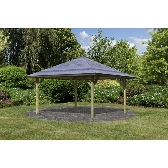 KARIBU Carport »Pavillon Carport«, Außenmaß BxT: 706,5 x 359 cm, natur, Außenmaß: Breite 706,5 cm, Tiefe 359 cm, Firsthöhe 315 cm, Walmdach Walmdach Viereck, 11,5 x 11,5 cm Massivholzpfosten inkl. Querverbinder aus Massivholz, 27° Dachneigung