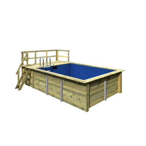 KARIBU Pool, beige, 12,7 l, Pool aus chromfreien kesseldruckimprägniertem Rundprofilhölzern, immer inklusive hochwertigem Unterlegvlies und 0,6 mm starker Poolfolie mit Einhängebiese, Do ist yourself. Einfache Montage durch aufeinander stecken der Bohlen, wasserabweisende Profilierung, inkl. hochwertiger Edelstahl- und Holzleiter