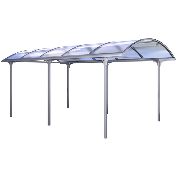 KGT Carport »Elbe«, Außenmaß BxT: 312 x 531 cm, silberfarben, sehr langlebige Konstruktion aus pulverbeschichtetem Aluminium-Profilen, Verglasung aus 8 mm starken ISO-Hohlkammerplatten, beidseitige große, durchgehende Regenrinne inkl. Fallrohren, erhöhte Schneelast von 125 kg/m², 6 Aluminium Stützen inkl. Einspannhülsen zum Einbetonieren