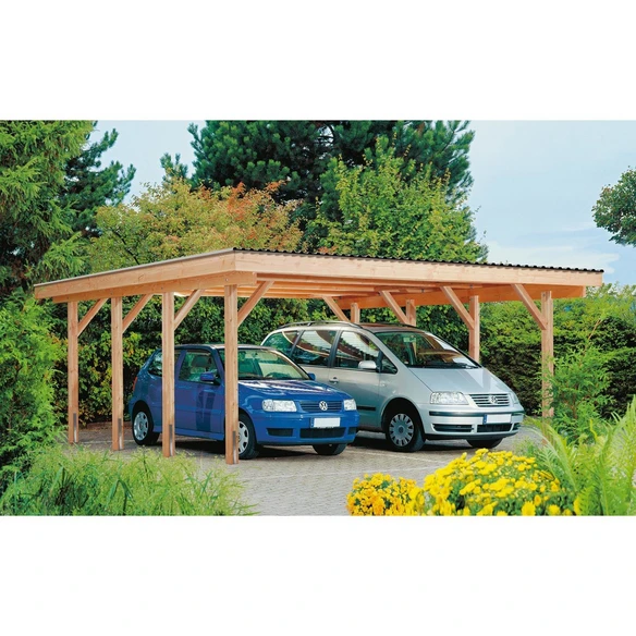 Mr. GARDENER Doppelcarport »Stuttgart 4«, Außenmaß BxT: 602 x 762 cm, braun, Holzart: Douglasie, idealer Unterstand für bis zu 2 Autos im Außenbereich, aus naturbelassenem Douglasienholz gefertigt, mit 10 stabilen Pfosten, hält Schneelasten von bis zu 200 kg/m², Dacheindeckung aus Aluminium