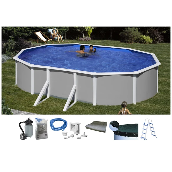 MYPOOL Ovalpool, grau/weiß, BxHxL: 300 x 132 x 500 cm, mit Sicherheitsleiter, Stahlwand 0,4 mm und PVC Innenfolie 0,4 mm, mit breitem Handlauf, inkl. Sandfilteranlage und Quarzsand