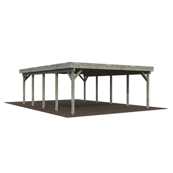 PALMAKO Doppelcarport »Karl«, Außenmaß BxT: 600 x 762 cm, grau, starke Leimholzpfosten, Stellfläche für 2 PKWs, 5 Jahre Garantie