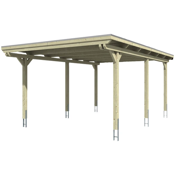 SKANHOLZ Carport »Emsland«, BxT: 404 x 604 cm, Firsthöhe: 242 cm, unbehandelt, Flachdach-Carport, massive Konstruktion aus hochwertigem Leimholz (BSH-Fichte), farblich unbehandelt, Aluminium-Dachplatten, Pfosten 12 x 12 cm