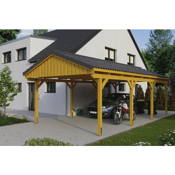 SkanHolz Carport »Fichtelberg«, BxT: 423 X 808 Cm, Firsthöhe: 326 Cm, Lasiert