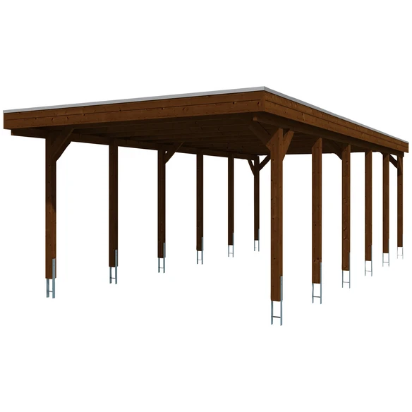 SKANHOLZ Carport »Friesland«, BxT: 397 x 860 cm, Firsthöhe: 241 cm, farbbehandelt, Flachdach-Carport, Konstruktion aus imprägniertem Nadelholz, farblich behandelt, Dachschalung mit EPDM-Folie, Pfosten 11,5 x 11,5 cm