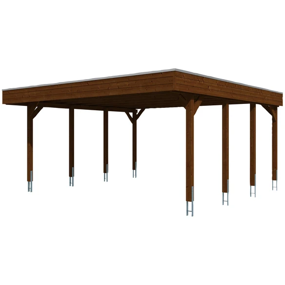 SKANHOLZ Carport »Friesland«, BxT: 557 x 555 cm, Firsthöhe: 254 cm, farbbehandelt, Flachdach-Carport, Konstruktion aus imprägniertem Nadelholz, farblich behandelt, Dachschalung mit EPDM-Folie, Pfosten 11,5 x 11,5 cm