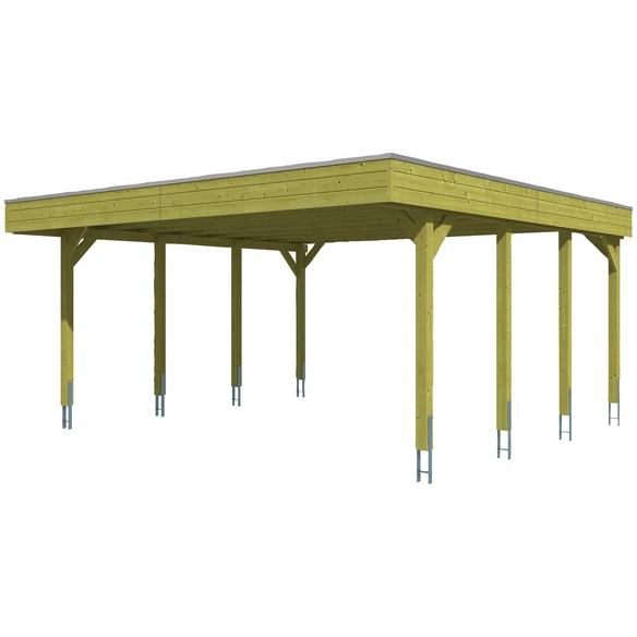 SKANHOLZ Carport »Friesland«, BxT: 557 x 555 cm, Firsthöhe: 254 cm, imprägniert, Flachdach-Carport, Konstruktion aus imprägniertem Nadelholz, grün imprägniert, Dachschalung mit EPDM-Folie, Pfosten 11,5 x 11,5 cm