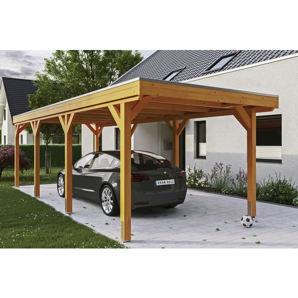 SKANHOLZ Carport »Grunewald«, BxT: 321 x 796 cm, Firsthöhe: 243 cm, lasiert, Flachdach-Carport, Massive Konstruktion aus hochwertigem Leimholz (BSH-Fichte), farblich behandelt, Dachschalung mit EPDM-Folie, Pfosten 12 x 12 cm