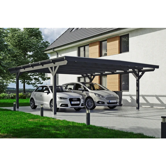 SkanHolz Carport »Odenwald«, BxT: 640 X 648 Cm, Firsthöhe: 244 Cm, Farbbehandelt