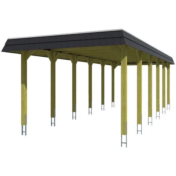 SKANHOLZ Carport »Spessart«, BxT: 345 x 893 cm, Firsthöhe: 241 cm, farbbehandelt, Flachdach-Carport, Konstruktion aus imprägniertem Nadelholz, farblich behandelt, Aluminium-Dachplatten, Pfosten 11,5 x 11,5 cm