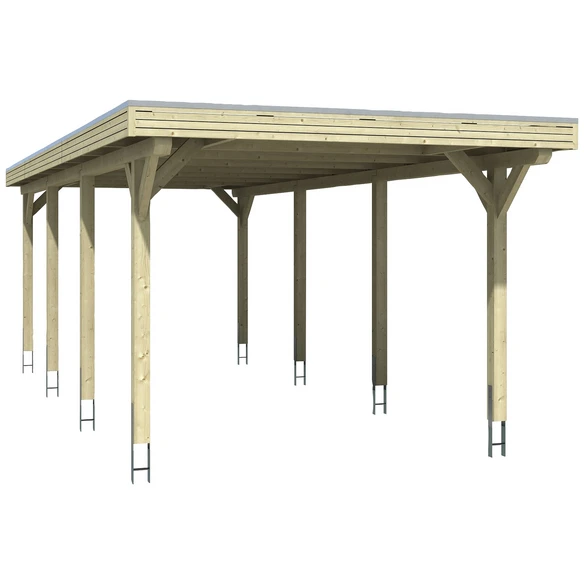 SKANHOLZ Carport »Spessart«, BxT: 355 x 846 cm, Firsthöhe: 243 cm, farbbehandelt, Flachdach-Carport, massive Konstruktion aus hochwertigem Leimholz (BSH-Fichte), farblich behandelt, Aluminium-Dachplatten, Pfosten 12 x 12 cm