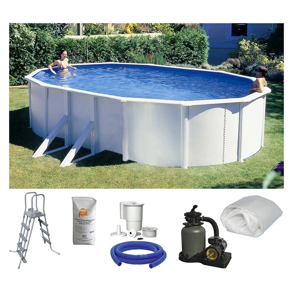 SUMMER FUN Ovalpool, weiß, BxHxL: 300 x 120 x 500 cm, Ovalformbeckenset, 0,45 mm starke Stahlwand und 0,3 mm dicke Folie, mit Sandfilteranlage, Skimmer und Filtersand, mit Leiter und Bodenschutzplane