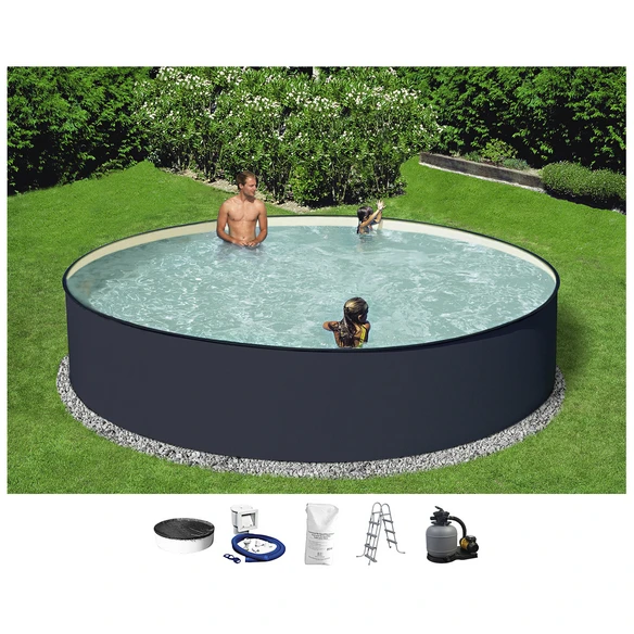 SUMMER FUN Rundpool, rund, Ø x H: 300 x 90 cm, Rundbeckenset, 0,3 mm starke Stahlwand und 0,2 mm dicke Folie, mit Sandfilteranlage, Skimmer und Filtersand, mit Leiter und Abdeckplane