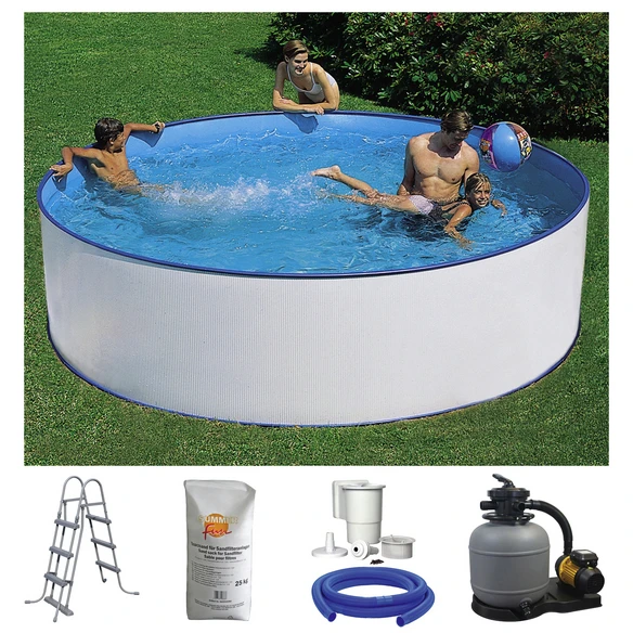 SUMMER FUN Rundpool, rund, Ø x H: 450 x 90 cm, Rundbeckenset, 0,3 mm starke Stahlwand und 0,2 mm dicke Folie, mit Sandfilteranlage, Skimmer und Filtersand, mit Leiter
