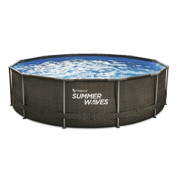 SUMMER WAVES® Pool »Active«, braun, ØxH: 366 x 91 cm, Robuste Poolkonstruktion aus Metall, Ovale Rahmenrohre für mehr Stabilität, Edle & zeitlose Optik in Rattan braun, Pool-Folie aus 3-lagigem PVC-Polyester-Mix, Enthaltenes Zubehör: SkimmerPlus 2-in-1-Filterpumpe