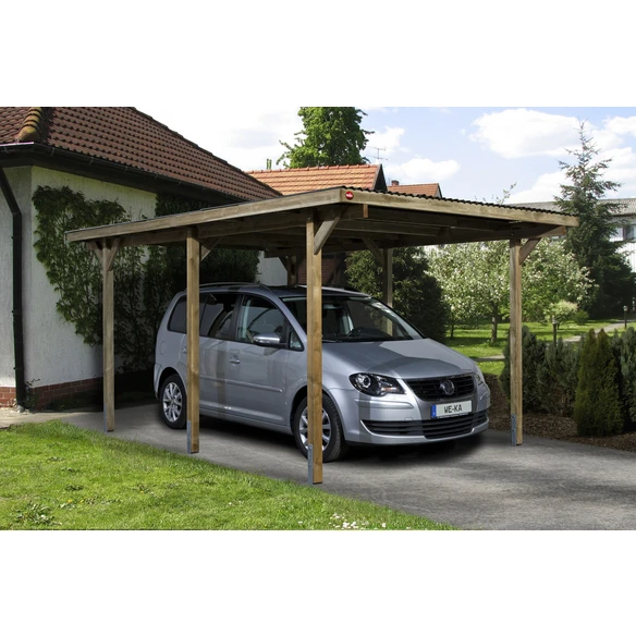 WEKA Carport »606 Gr. 1«, grün, Kiefernholz, BxT: 250 x 500 cm, stabiles PVC-Kunststoffdach mit Wellenprofil, kesseldruckimprägniert= witterungsgeschützt, große Durchfahrtsbreite: 250 cm