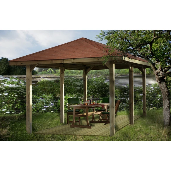 WEKA Carport »651«, Außenmaß BxT: 584 x 333 cm, grün, 19 mm Massivholzdach, kesseldruckimprägniert= witterungsgeschützt, Dachschindeln rechteckig rot inklusive, Pfosten 12 x 12 cm