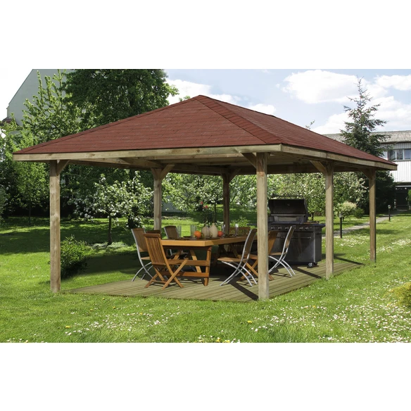 WEKA Carport »651«, Außenmaß BxT: 778 x 433 cm, grün, 19 mm Massivholzdach, kesseldruckimprägniert= witterungsgeschützt, Dachschindeln rechteckig rot inklusive, Pfosten 12 x 12 cm