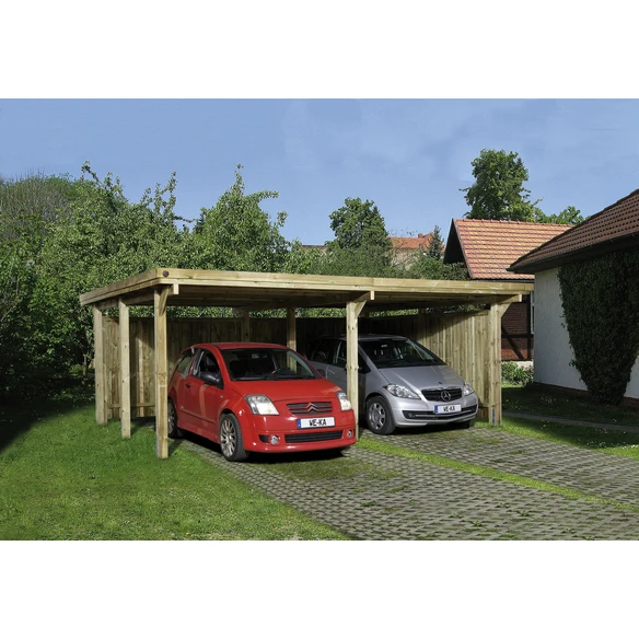 WEKA Carport, holzfarben, Dachbelag: graues Kunststoffdach in Trapezform mit stabiler Dachplatte (1,2 mm), 2,15 m Durchfahrtshöhe, 2,70 m Durchfahrtsbreite, stabile, 12 cm starke Pfosten, kesseldruckimprägniert= Witterungsgeschützt