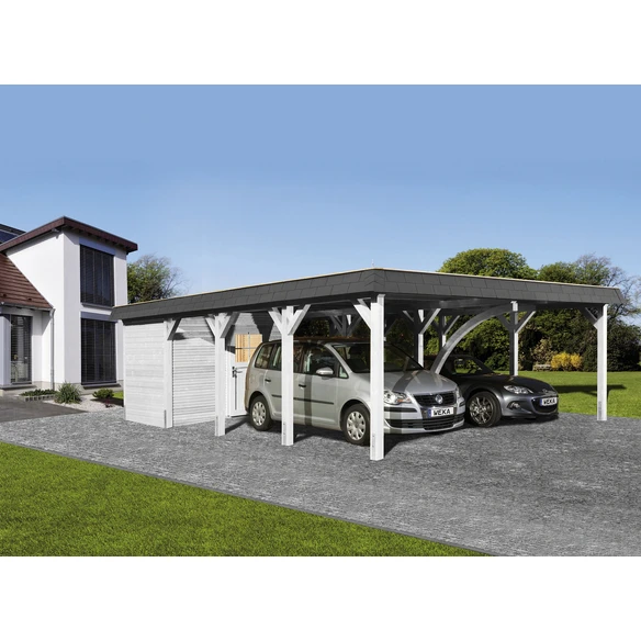WEKA Carport, natur, Flachdach aus verzinktem Stahl mit Trapezprofil, Inklusive Zierblende, extra stabile Konstruktion aus hochwertigem Leimholz, 12cm starke Pfosten